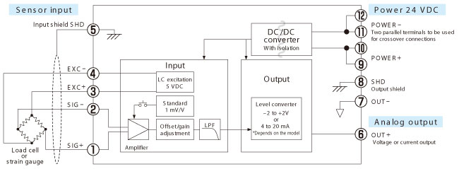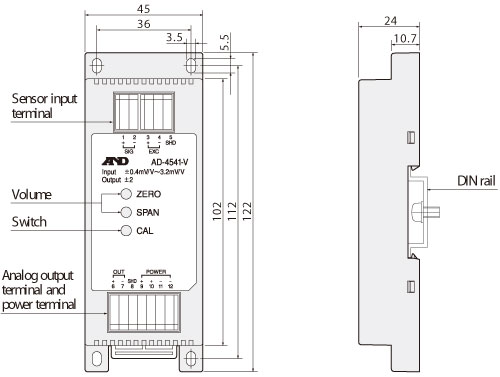 AD-4541-V 和-4541-I 能将重力传感器,压力传感器,应变式传感器及其它信号转换为通用标准信号. 电压输出 (AD-4541- V/-2V到+2 V) 或电流输出 (AD-4541- I/4-20mA).特点:● 超薄,重量轻易于安装● 通过CAL开关控制能执行零点/量程值校准● 为适应各种不同类型的电桥传感器提供宽范围的零调整(±1.6 mV/V)及量程调整(0.4~3.2 mV/V) ● 因为采用弹性夹端子锁紧所以无需配备接线端子,容易连线